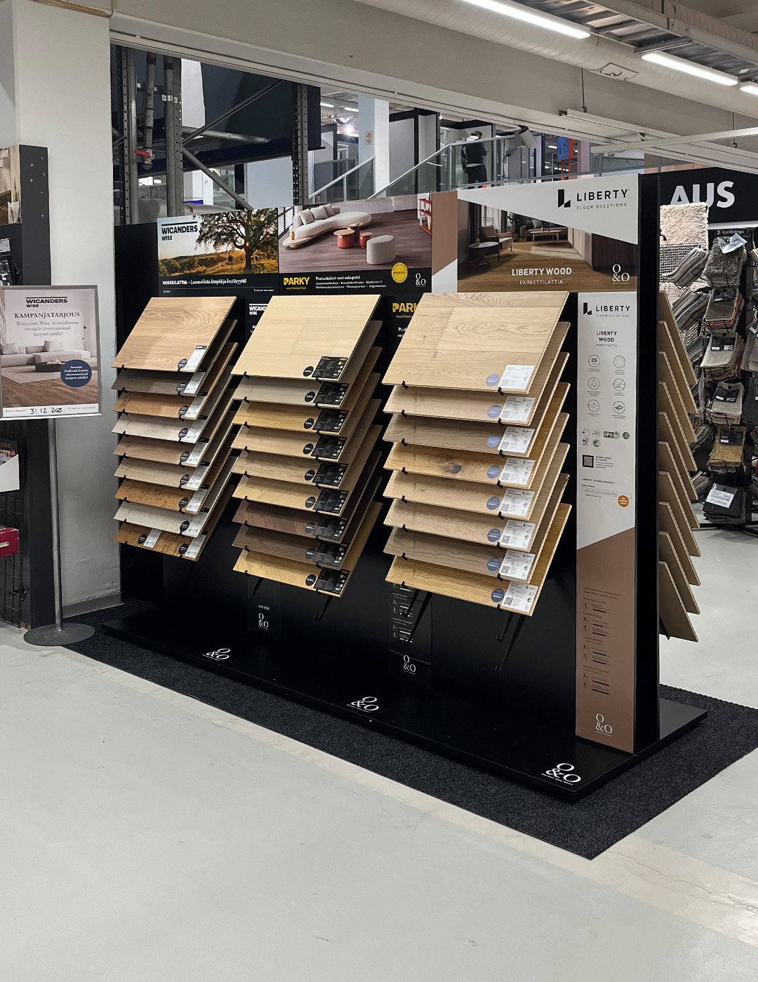 K-Rauta Espoon keskuksen lattiaosaston uudistus toteutettiin yhteistyössä O&O:n kanssa. Uusi ilme tuo osastolle selkeyttä ja ohjaa asiakasta löytämään hänelle oikeat tuotteet. Samalla näyttävät esillepanot tarjoavat inspiraatiota kodin sisustajalle, olipa hänen budjettinsa tai tyylinsä mikä tahansa. Kattavasta valikoimasta on helppo tehdä valintoja, kun eri kuosien ja tuotteiden vertailu on vaivatonta.