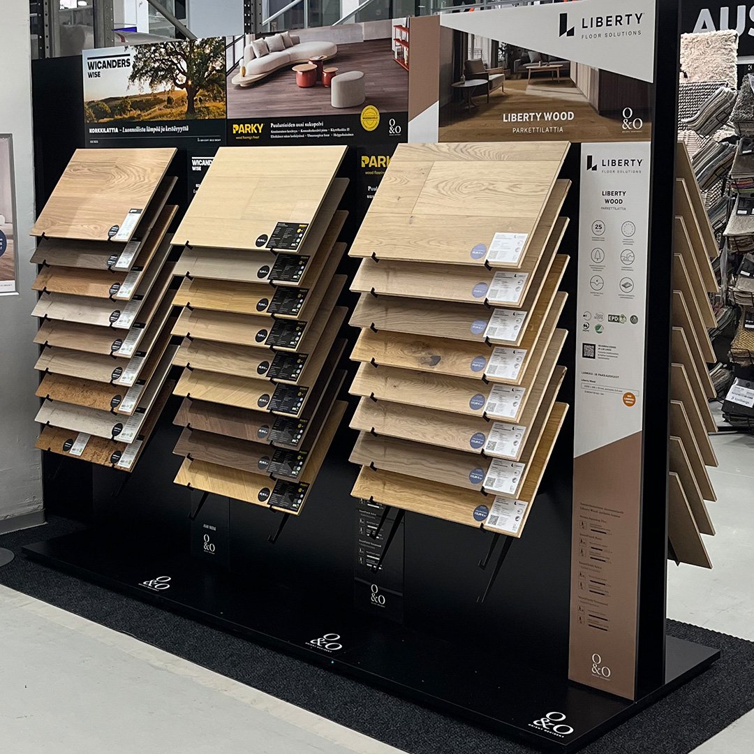 Myymäläosasto uudistettiin kokonaisvaltaisesti selkeämmäksi, inspiroivammaksi ja kattavammaksi. Nyt valikoima sisältää kaikki markkinoiden suosituimmat lattiaratkaisut.