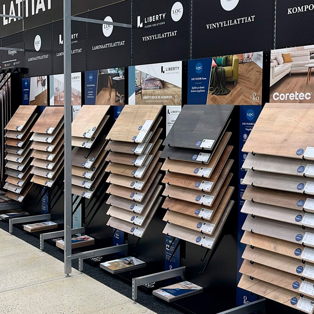 K-Rauta Lielahden lattiosasto uudistettiin kokonaisvaltaiseksi vastaamaan asiakkaiden tarpeita ja helpottamaan myyntiä. Uusi ilme tuo selkeyttä ja inspiraatiota, ja päivitetty valikoima kattaa kaikki markkinoiden suosituimmat lattiaratkaisut. Tuotteiden vertailu on suurten näytelevyjen ansiosta mutkatonta, mikä nopeuttaa päätöksentekoa. Näytelevyistä on hyötyä myös asiakkaan valitessa muita pintamateriaaleja ja -sävyjä kotiinsa.
