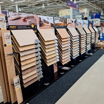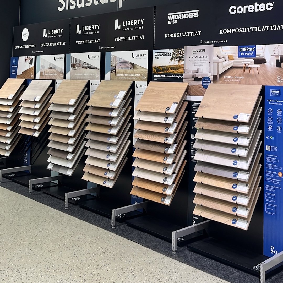 Myymälän lattiaosaston ilme uudistui kokonaisvaltaisesti. Uusi ilme tarjoaa paitsi inspiraatiota, myös mahdollisuuden vertailla eri tuotteita helposti keskenään, kun kaikki tekniset ominaisuudet on esitetty esillepanoissa selkeästi. Samalla valikoima laajennettiin kattamaan kaikki markkinoiden suosituimmat lattiaratkaisut.