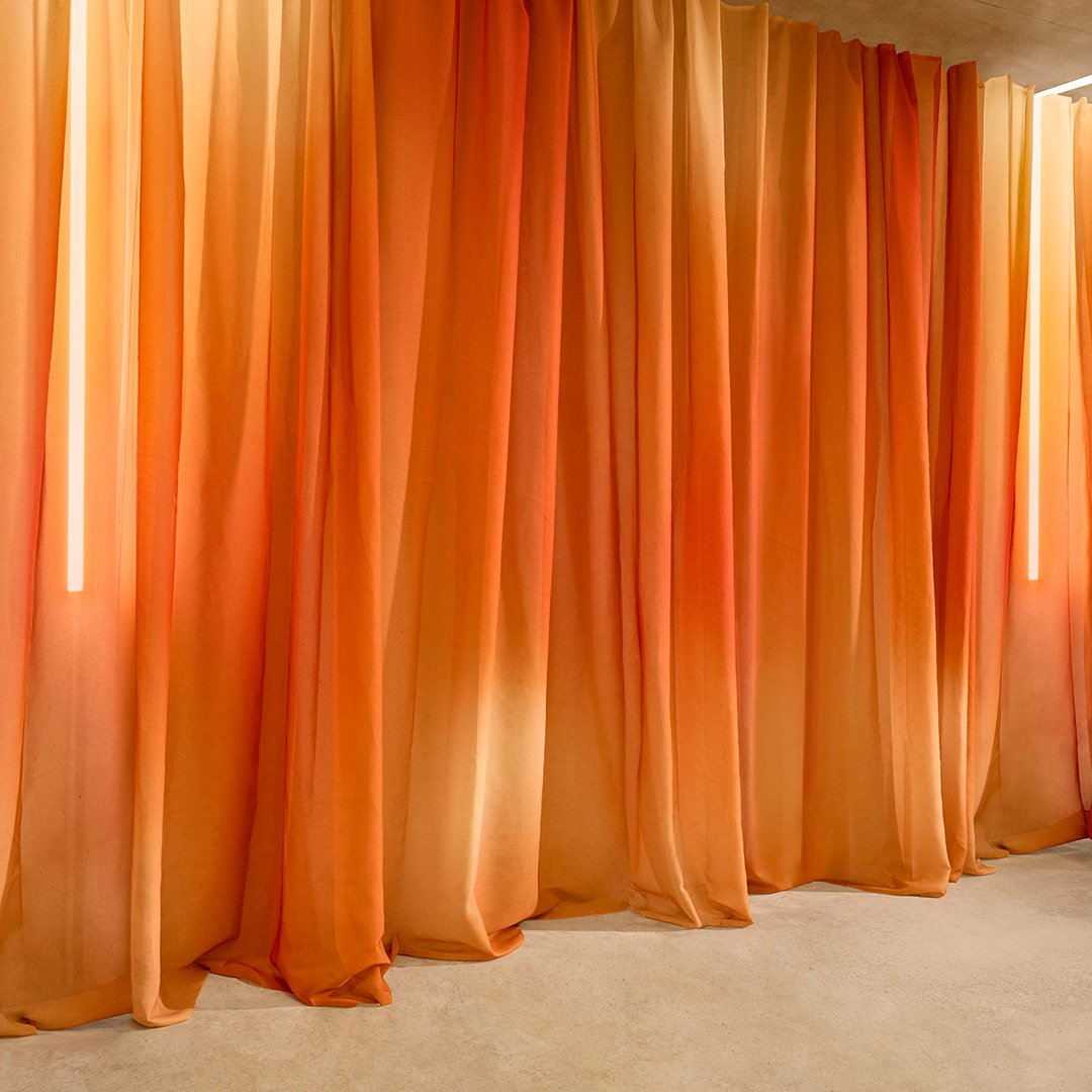 Kirkby Lume FR -kankaan upea, liukuvärjätty efekti tarjoaa kaunista värien sinfoniaa, ja se voidaan ripustaa miten päin tahansa.