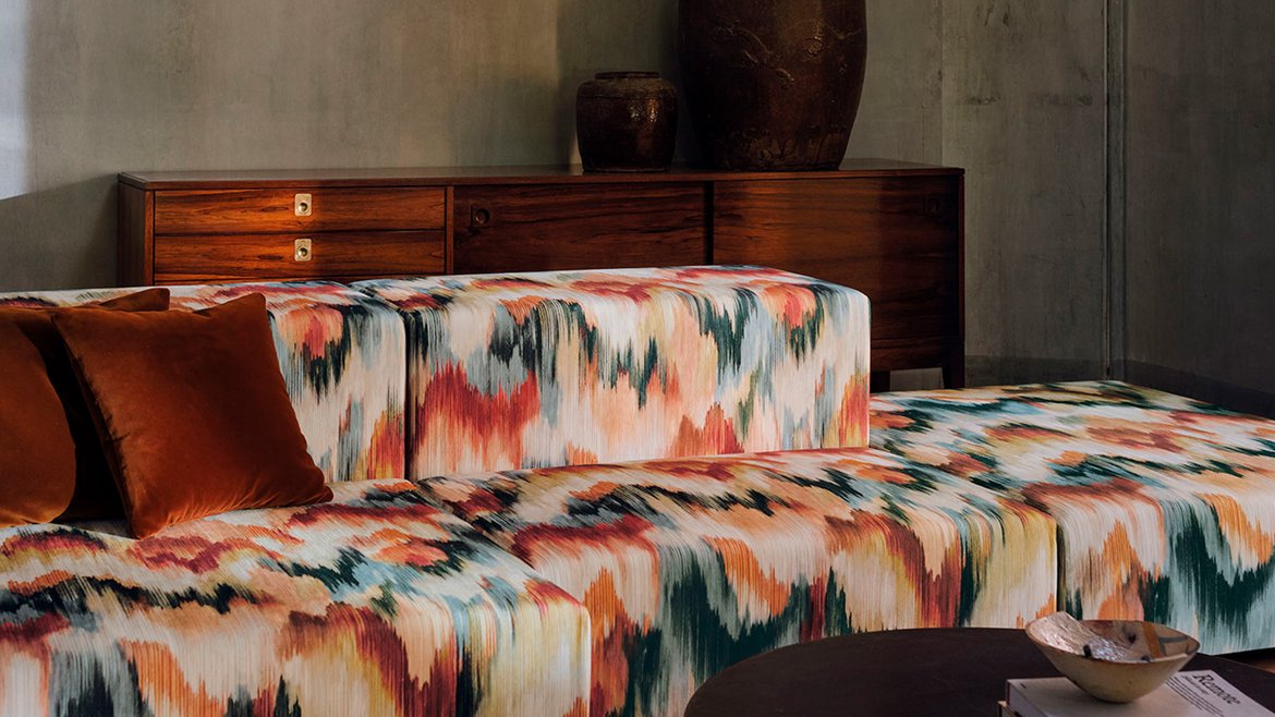 Merkin tuotevalikoimasta löytyy verho- ja huonekalukankaita, tapetteja, sekä sisustustyynyjä.