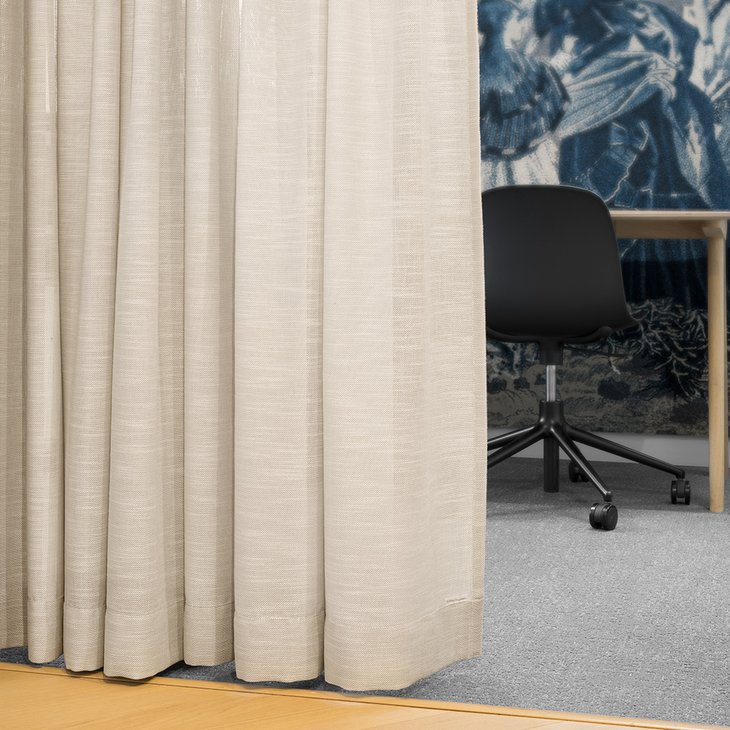 Pellavahenkinen ja struktuuripintainen valoa läpäisevä verhokangas. Materiaali paloturvallista polyesteriä ja siksi Linnea sopii hyvin julkisiin tiloihin verhoksi. Korkea pesulämpötilansa ansiosta Linnea sopii myös terveydenhuollon kohteisiin ja hoivakoteihin.