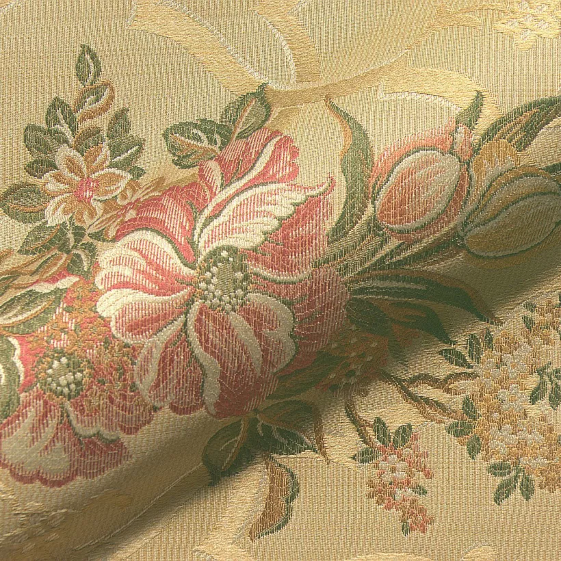 Näyttävä kangas tyylikalusteisiin. Kankaassa ornamentti ja köynnöskuvio.
