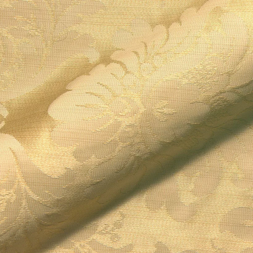 Medaljonki-kuviollinen kangas tyylikalusteisiin. Kankaassa hento pystyraidoitus.