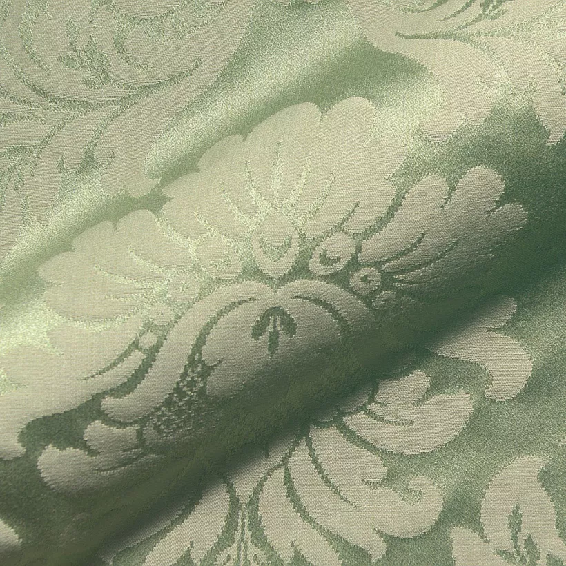 Medaljonki-kuviollinen kangas tyylikalusteisiin. Kankaassa hento pystyraidoitus.
