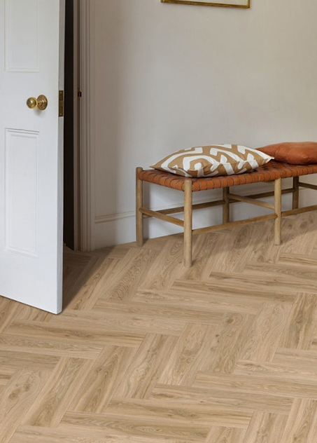 Moduleo Roots Herringbone -vinyylilattian kalanruotokuviointi luo tilaan ajattoman ja persoonallisen ilmeen. Se on lattiaratkaisu, joka yhdistää klassisen tyylin moderniin skandinaaviseen muotoiluun. Käyttöluokka 33 takaa erinomaisen kulutuskestävyyden ja tekee siitä täydellisen ratkaisun niin ravintoloihin, hotelleihin, toimistoihin kuin myymäläympäristöihin.
